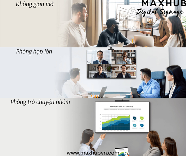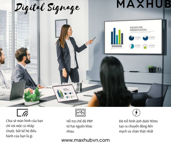 Với mục đích hiển thị, Dùng trong phòng họp, phòng học, trình chiếu quảng cáo thương mại, màn hình hiển thị Maxhub có những ưu điểm vượt trội sau so với TV truyền thống: