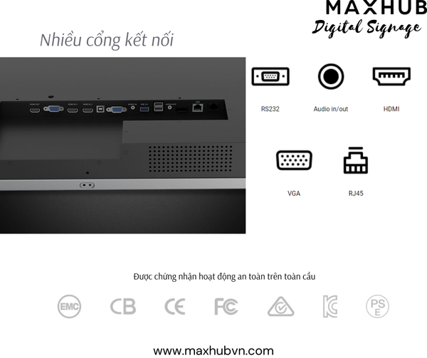 Được kiểm tra nghiêm ngặt để đảm bảo khả năng hoạt động an toàn, Màn hình hiển thị chuyên dụng Maxhub được chứng nhận để sử dụng ở mọi nơi trên thế giới.